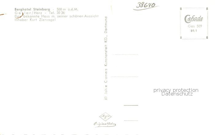 73762508 GOSLAR Harz Niedersachsen Berghotel Steinberg Panorama postalisch nicht gelaufen Erhaltung siehe scans [WerneD78] Wern Katcode 11110003153005