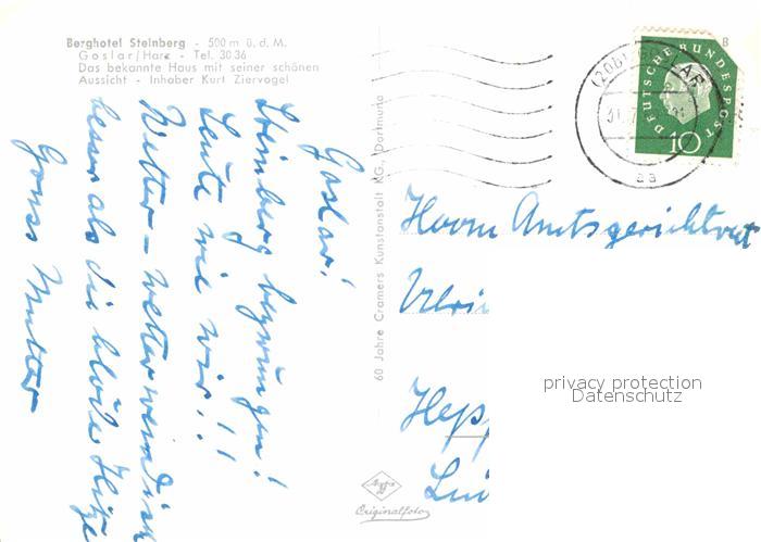72697770 alte Postkarte GOSLAR Harz Niedersachsen Berghotel Steinberg postalisch gelaufen Erhaltung siehe scans [KathaD79] KatCode: 11110003153005