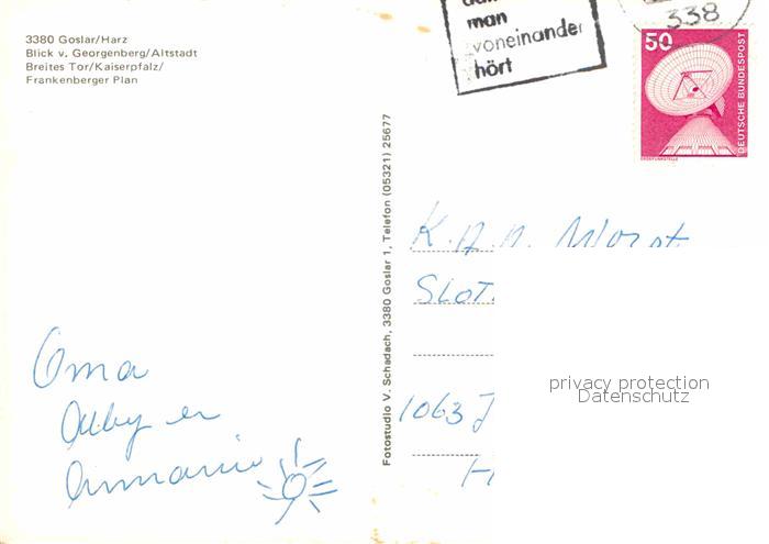 72653655 alte Postkarte GOSLAR Harz Niedersachsen Blick vom Georgenberg Breites-Tor Kaiserpfalz Frankenberger-Plan postalisch gelaufen Erhaltung siehe scans [LiesaD40] KatCode: 11110003153005