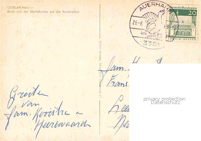 72772813 alte Postkarte GOSLAR Harz Niedersachsen Blick von der Marktkirche auf die Kaiserpfalz postalisch gelaufen Erhaltung siehe scans [WerneD78] KatCode: 11110003153005