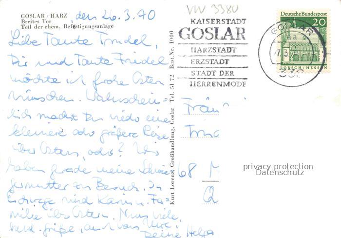 74104635 alte Postkarte GOSLAR Harz Niedersachsen Breites Tor postalisch gelaufen Erhaltung siehe scans [WerneD78] KatCode: 11110003153005