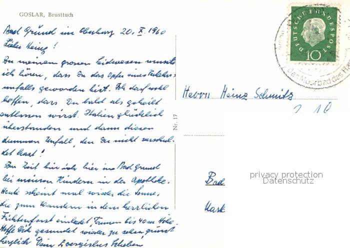 72815619 alte Postkarte GOSLAR Harz Niedersachsen Brusttuch Gaststaette Hotel postalisch gelaufen Erhaltung siehe scans [FriedD77] KatCode: 11110003153005