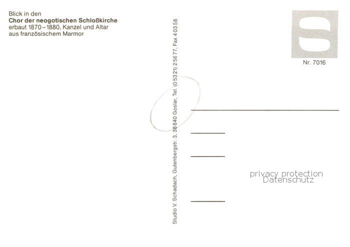 73789558 GOSLAR Harz Niedersachsen Chor der neogotischen Schlosskirche Kanzel und Altar postalisch nicht gelaufen Erhaltung siehe scans [WerneD78] Wern Katcode 11110003153005