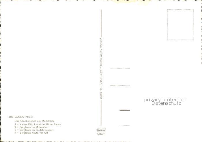 72103466 GOSLAR Harz Niedersachsen Das Glockenspiel postalisch nicht gelaufen Erhaltung siehe scans KatCode: 11110003153005