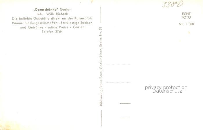 43352815 GOSLAR Harz Niedersachsen Domschaenke postalisch nicht gelaufen Erhaltung siehe scans [KathaD81] Kath Katcode 11110003153005