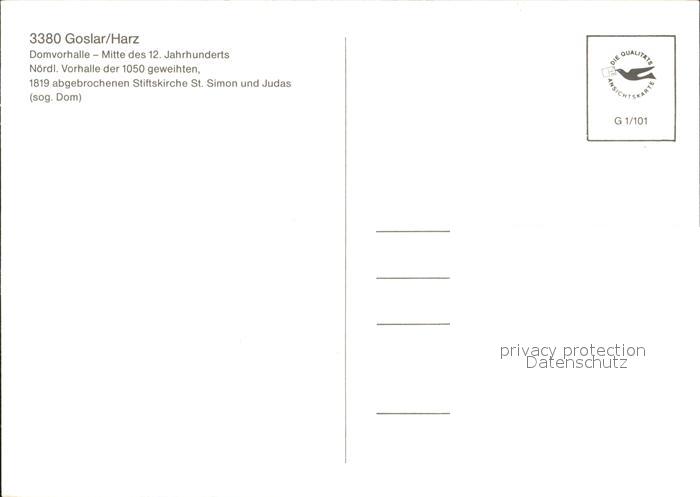 72574170 GOSLAR Harz Niedersachsen Domvorhalle postalisch nicht gelaufen Erhaltung siehe scans [KathaD79] KatCode: 11110003153005