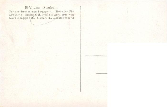 73910173 GOSLAR Harz Niedersachsen Eifelturm Strohuhr Hersteller Karl Klapproth postalisch nicht gelaufen Erhaltung siehe scans [FriedD77] Frie Katcode 11110003153005
