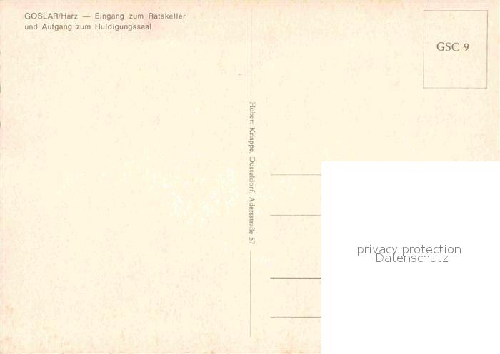 72630607 GOSLAR Harz Niedersachsen Eingang zum Ratskeller postalisch nicht gelaufen Erhaltung siehe scans [LiesaD40] KatCode: 11110003153005