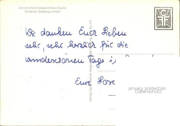72159075 GOSLAR Harz Niedersachsen Empfangszimmer Siemens Familienstammhaus postalisch nicht gelaufen Erhaltung siehe scans KatCode: 11110003153005