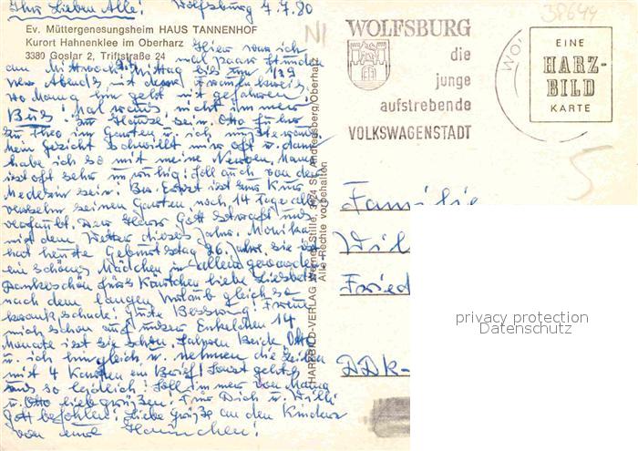 72812291 alte Postkarte GOSLAR Harz Niedersachsen Evangelische Muettergenesungsheim Haus Tannenhof postalisch gelaufen Erhaltung siehe scans [NatalD47] KatCode: 11110003153005