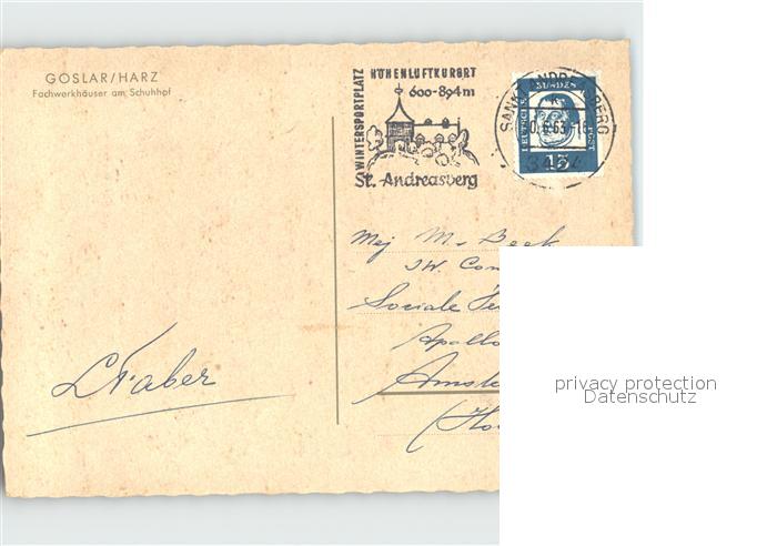 72300540 alte Postkarte GOSLAR Harz Niedersachsen Fachwerkhaeuser am Schuhhof postalisch gelaufen Erhaltung siehe scans KatCode: 11110003153005
