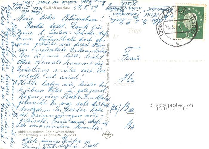 33659460 GOSLAR Harz Niedersachsen Fliegeraufnahme postalisch gelaufen Erhaltung siehe scans [WerneD78] alte Postkarte Wern Katcode 11110003153005