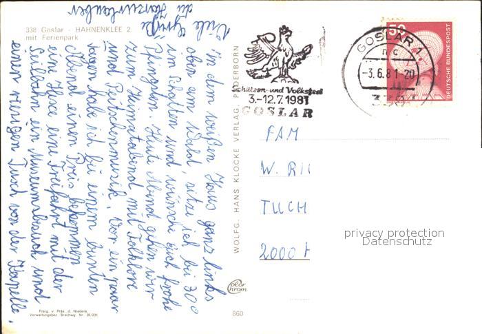 72417457 alte Postkarte GOSLAR Harz Niedersachsen Fliegeraufnahme Hahnenklee mit Ferienpark postalisch gelaufen Erhaltung siehe scans KatCode: 11110003153005