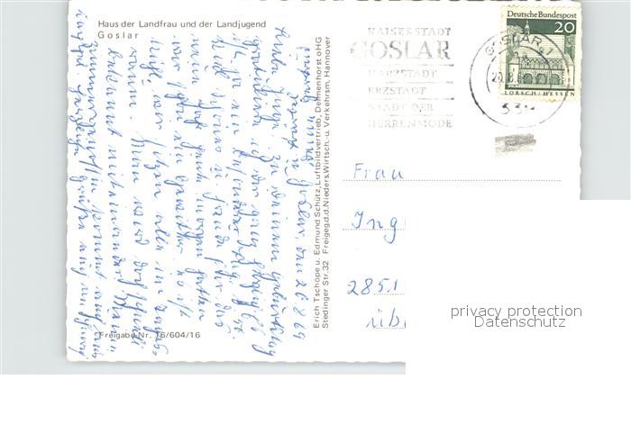 72612752 alte Postkarte GOSLAR Harz Niedersachsen Fliegeraufnahme Haus der Landfrau und der Landjugend postalisch gelaufen Erhaltung siehe scans [AndreD76] KatCode: 11110003153005