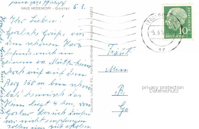72844496 alte Postkarte GOSLAR Harz Niedersachsen Fliegeraufnahme Haus Hessenkopf postalisch gelaufen Erhaltung siehe scans [KathaD81] KatCode: 11110003153005