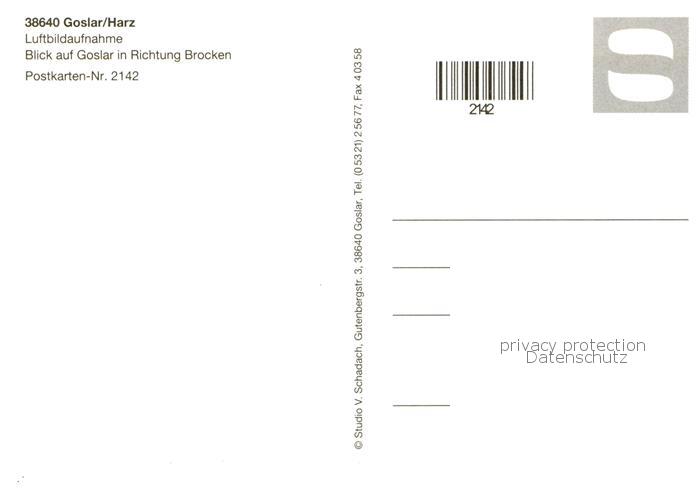 73838368 GOSLAR Harz Niedersachsen Fliegeraufnahme mit Brocken postalisch nicht gelaufen Erhaltung siehe scans [WerneD78] Wern Katcode 11110003153005