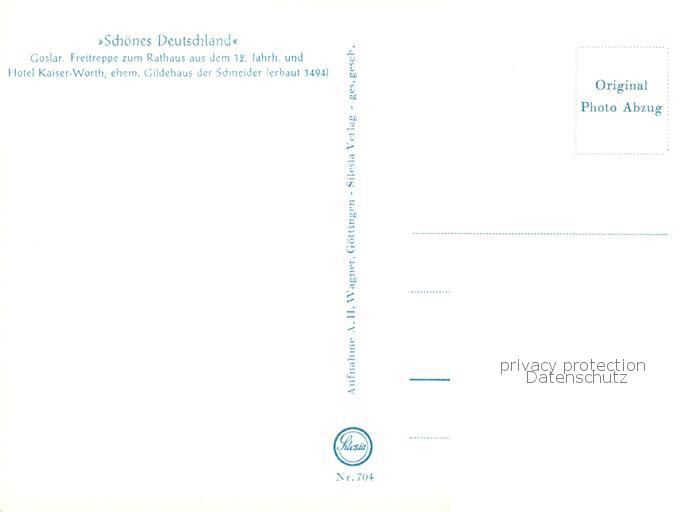 73788722 GOSLAR Harz Niedersachsen Freitreppe zum Rathaus 12. Jhdt. Hotel Kaiserworth ehemals Gildehaus der Schneider 15. Jhdt. Serie Schoenes Deutschland postalisch nicht gelaufen Erhaltung siehe scans [FriedD77] Frie Katcode 11110003153005