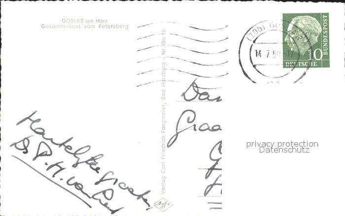 72062003 alte Postkarte GOSLAR Harz Niedersachsen Gesamtansicht postalisch gelaufen Erhaltung siehe scans KatCode: 11110003153005