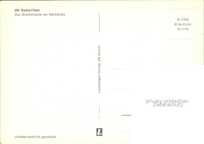 72186588 GOSLAR Harz Niedersachsen Glockenspiel Marktplatz postalisch nicht gelaufen Erhaltung siehe scans KatCode: 11110003153005