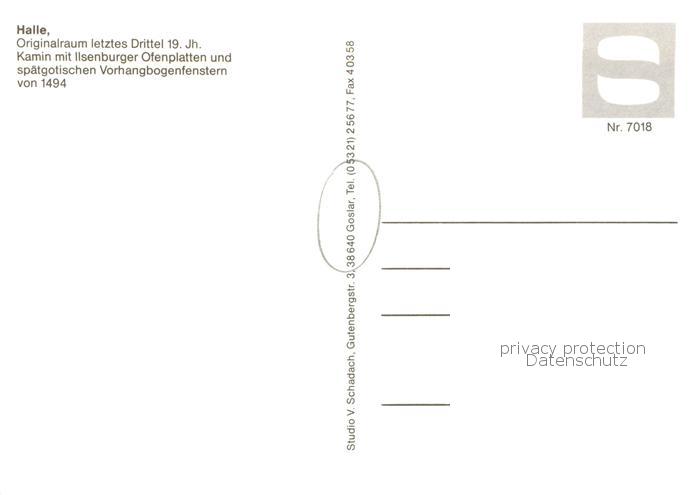 73789561 GOSLAR Harz Niedersachsen Halle Kamin mit Ilsenburger Ofenplatten und spaetgot Vorhangbogenfenstern postalisch nicht gelaufen Erhaltung siehe scans [WerneD78] Wern Katcode 11110003153005