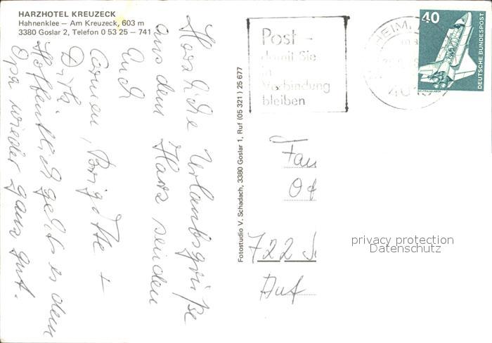 72244040 alte Postkarte GOSLAR Harz Niedersachsen Harzhotel Kreuzeck postalisch gelaufen Erhaltung siehe scans KatCode: 11110003153005