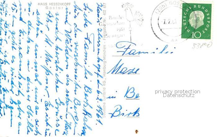 43353129 GOSLAR Harz Niedersachsen Haus Hessenkopf Fliegeraufnahme postalisch gelaufen Erhaltung siehe scans [KathaD81] alte Postkarte Kath Katcode 11110003153005