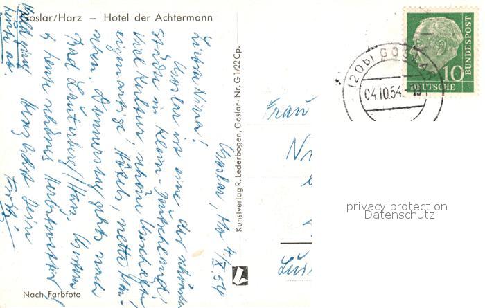 43352771 GOSLAR Harz Niedersachsen Hotel der Achtermann Flaggen postalisch gelaufen Erhaltung siehe scans [KathaD81] alte Postkarte Kath Katcode 11110003153005