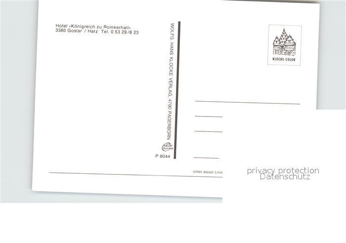 72613306 GOSLAR Harz Niedersachsen Hotel Koenigreich zu Romkerhall postalisch nicht gelaufen Erhaltung siehe scans [AndreD76] KatCode: 11110003153005