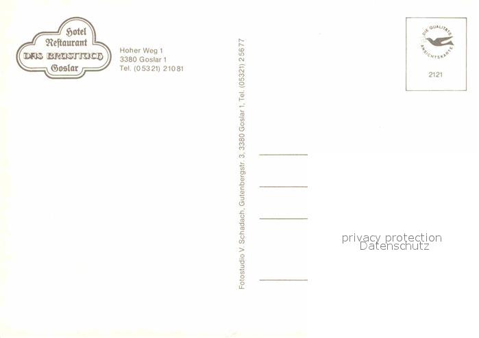 72779729 GOSLAR Harz Niedersachsen Hotel Restaurant Das Brusttuch postalisch nicht gelaufen Erhaltung siehe scans [FriedD77] KatCode: 11110003153005
