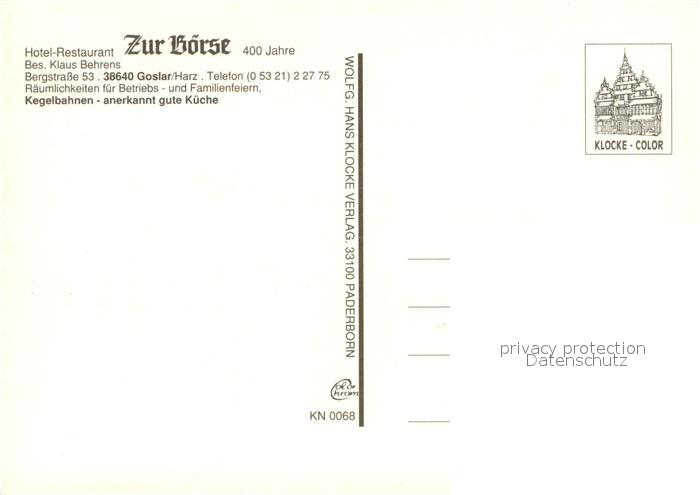 73660631 GOSLAR Harz Niedersachsen Hotel Restaurant Zur Boerse 400 Jahre Historisches Gebaeude postalisch nicht gelaufen Erhaltung siehe scans [FriedD77] Frie Katcode 11110003153005
