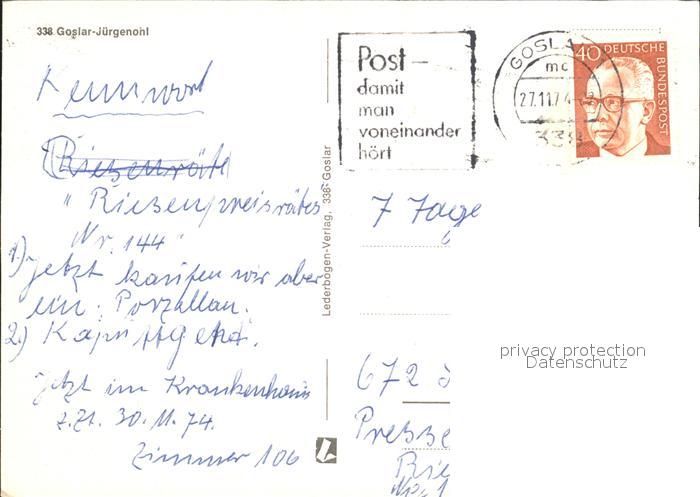72304149 alte Postkarte GOSLAR Harz Niedersachsen Juergenohl Robert-Koch-Strasse Danziger-Strasse postalisch gelaufen Erhaltung siehe scans KatCode: 11110003153005