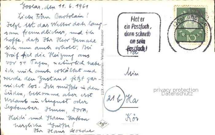 72034284 alte Postkarte GOSLAR Harz Niedersachsen Jugendherberge postalisch gelaufen Erhaltung siehe scans KatCode: 11110003153005