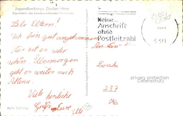71925149 alte Postkarte GOSLAR Harz Niedersachsen Jugendherberge postalisch gelaufen Erhaltung siehe scans KatCode: 11110003153005