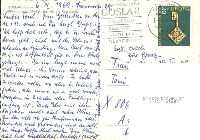 72402977 alte Postkarte GOSLAR Harz Niedersachsen Kaiserpfalz postalisch gelaufen Erhaltung siehe scans KatCode: 11110003153005