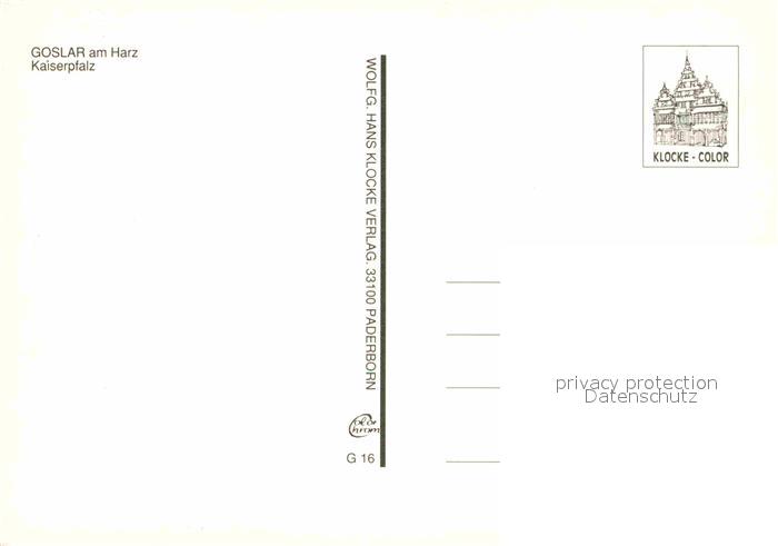72772411 GOSLAR Harz Niedersachsen Kaiserpfalz postalisch nicht gelaufen Erhaltung siehe scans [WerneD78] KatCode: 11110003153005