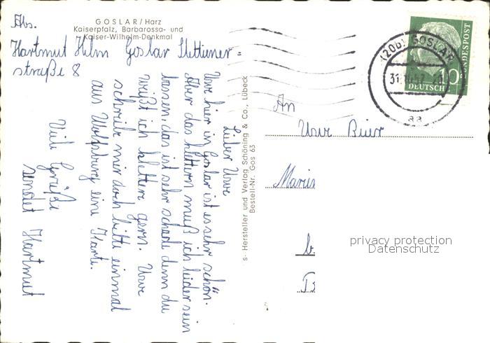 71894605 alte Postkarte GOSLAR Harz Niedersachsen Kaiserpfalz Barbarossa Kaiser-Wilhelm-Denkmal postalisch gelaufen Erhaltung siehe scans KatCode: 11110003153005