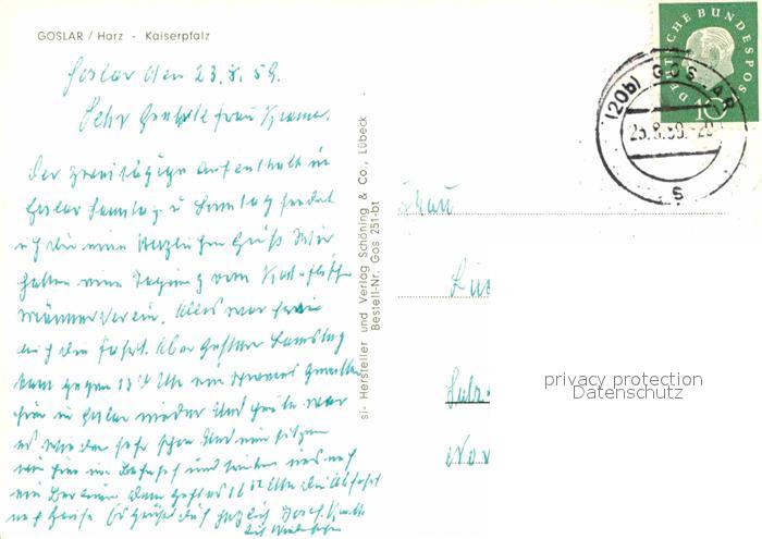 72858955 alte Postkarte GOSLAR Harz Niedersachsen Kaiserpfalz postalisch gelaufen Erhaltung siehe scans [FriedD77] KatCode: 11110003153005