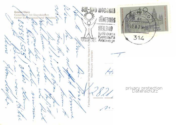 72624491 alte Postkarte GOSLAR Harz Niedersachsen Kaiserplatz Stadbildern Kaiser Barbarossas Wilhelms postalisch gelaufen Erhaltung siehe scans [NatalD47] KatCode: 11110003153005