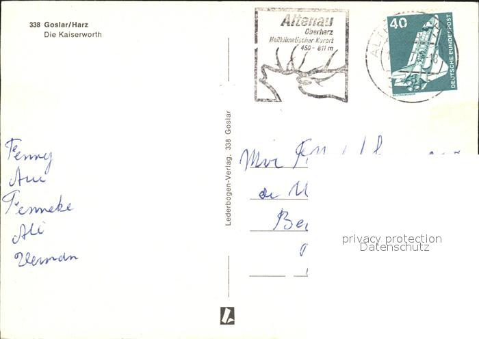 72544683 alte Postkarte GOSLAR Harz Niedersachsen Kaiserworth postalisch gelaufen Erhaltung siehe scans [NatalD47 kv014box] KatCode: 11110003153005