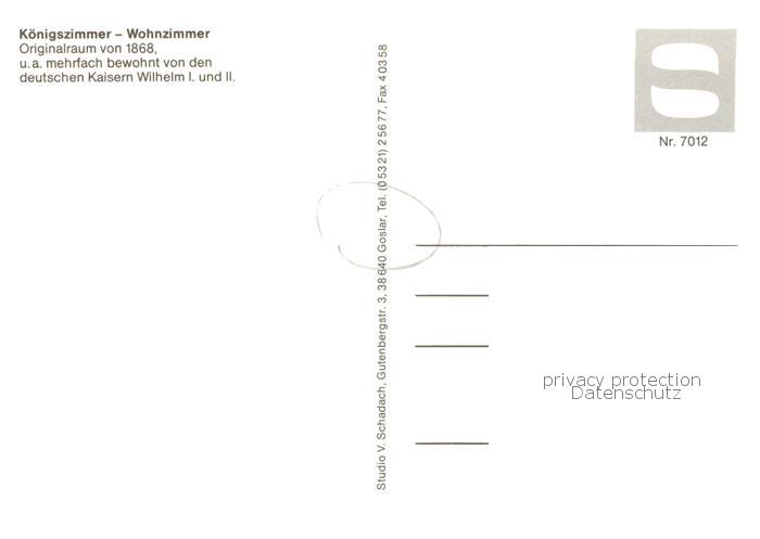 73789560 GOSLAR Harz Niedersachsen Koenigszimmer Wohnzimmer postalisch nicht gelaufen Erhaltung siehe scans [WerneD78] Wern Katcode 11110003153005