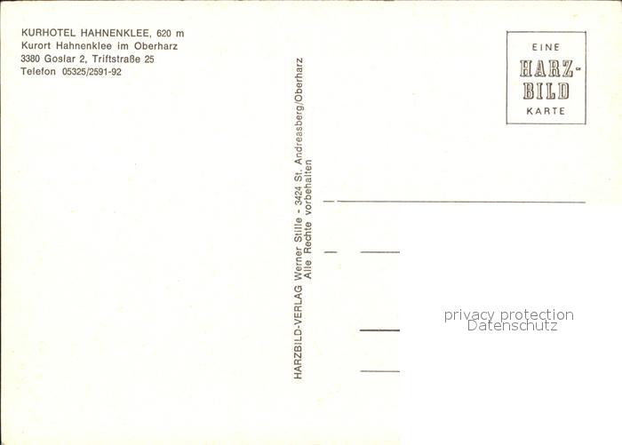 72444331 GOSLAR Harz Niedersachsen Kurhotel Hahnenklee postalisch nicht gelaufen Erhaltung siehe scans KatCode: 11110003153005