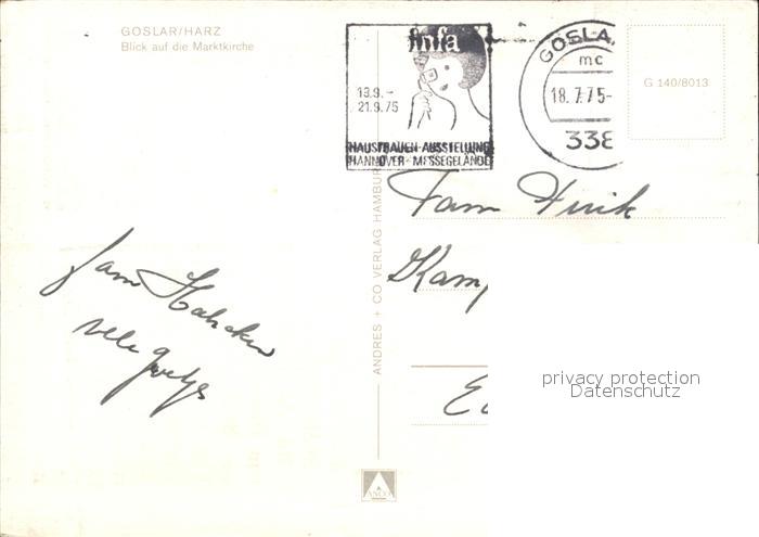72223455 alte Postkarte GOSLAR Harz Niedersachsen Marktkirche postalisch gelaufen Erhaltung siehe scans KatCode: 11110003153005