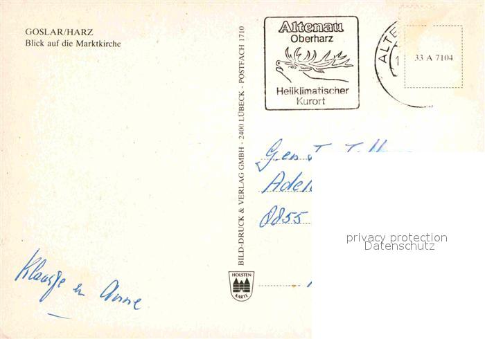 72822166 alte Postkarte GOSLAR Harz Niedersachsen Marktkirche postalisch gelaufen Erhaltung siehe scans [LiesaD40] KatCode: 11110003153005