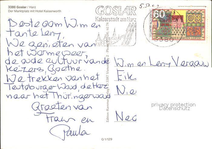 72464244 alte Postkarte GOSLAR Harz Niedersachsen Marktplatz Hotel Kaiserworth postalisch gelaufen Erhaltung siehe scans KatCode: 11110003153005