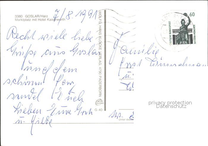 72312568 alte Postkarte GOSLAR Harz Niedersachsen Marktplatz mit Hotel Kaiserworth postalisch gelaufen Erhaltung siehe scans KatCode: 11110003153005