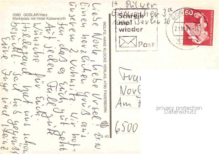 72840675 alte Postkarte GOSLAR Harz Niedersachsen Marktplatz mit Hotel Kaiserworth Brunnen postalisch gelaufen Erhaltung siehe scans [FriedD77] KatCode: 11110003153005