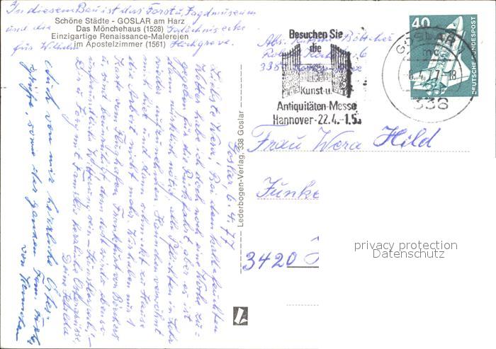 72347690 alte Postkarte GOSLAR Harz Niedersachsen Moenchehaus 16. Jhdt. Renaissance Malereien Apostelzimmer postalisch gelaufen Erhaltung siehe scans KatCode: 11110003153005