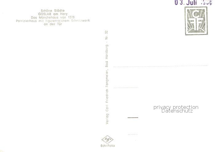 73784653 GOSLAR Harz Niedersachsen Moenchehaus Fachwerkhaus postalisch nicht gelaufen Erhaltung siehe scans [LiesaD40] Lies Katcode 11110003153005