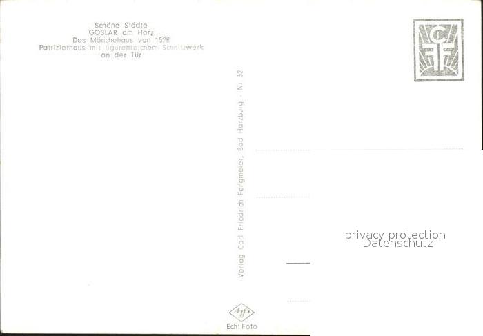 72043205 GOSLAR Harz Niedersachsen Moenchshaus Patrizierhaus mit figurenreichem Schnitzwerk an der Tuer postalisch nicht gelaufen Erhaltung siehe scans KatCode: 11110003153005