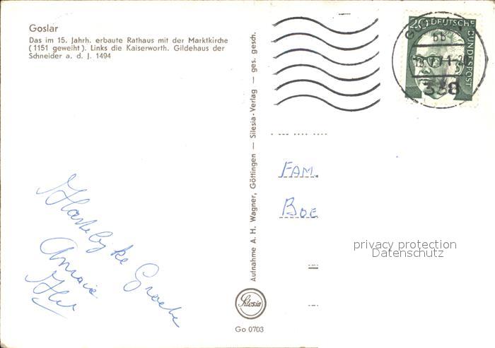 72529757 alte Postkarte GOSLAR Harz Niedersachsen Rathaus Marktkirche postalisch gelaufen Erhaltung siehe scans KatCode: 11110003153005